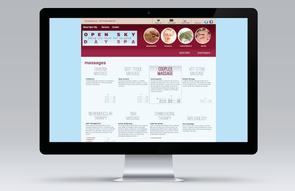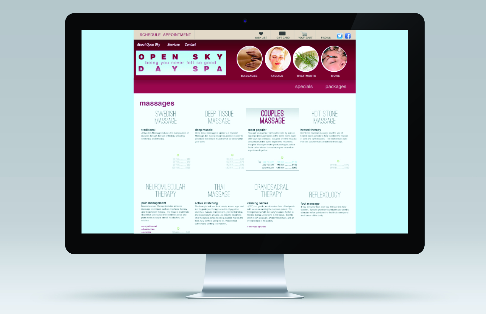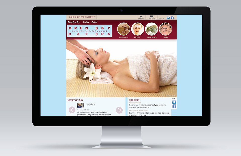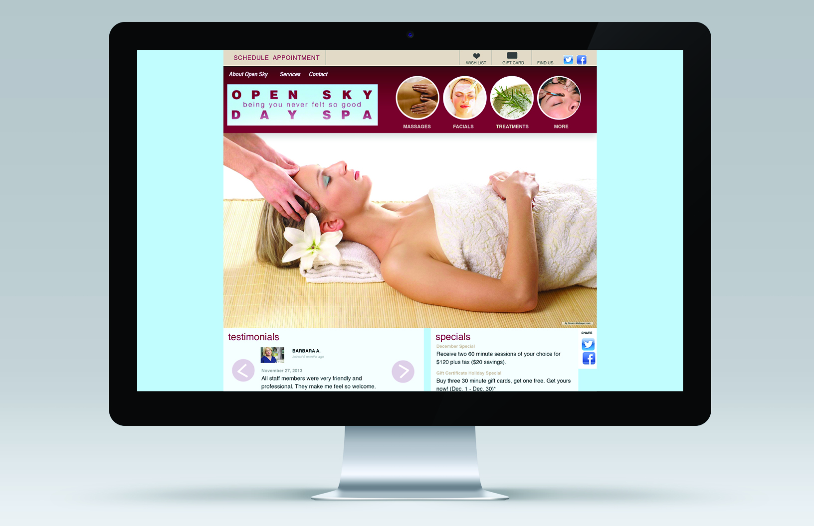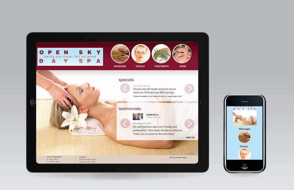 Conceptual: Redesigned responsive homepage for Open Sky Day Spa including UX & UI.