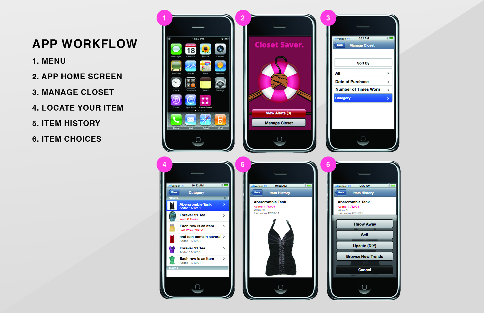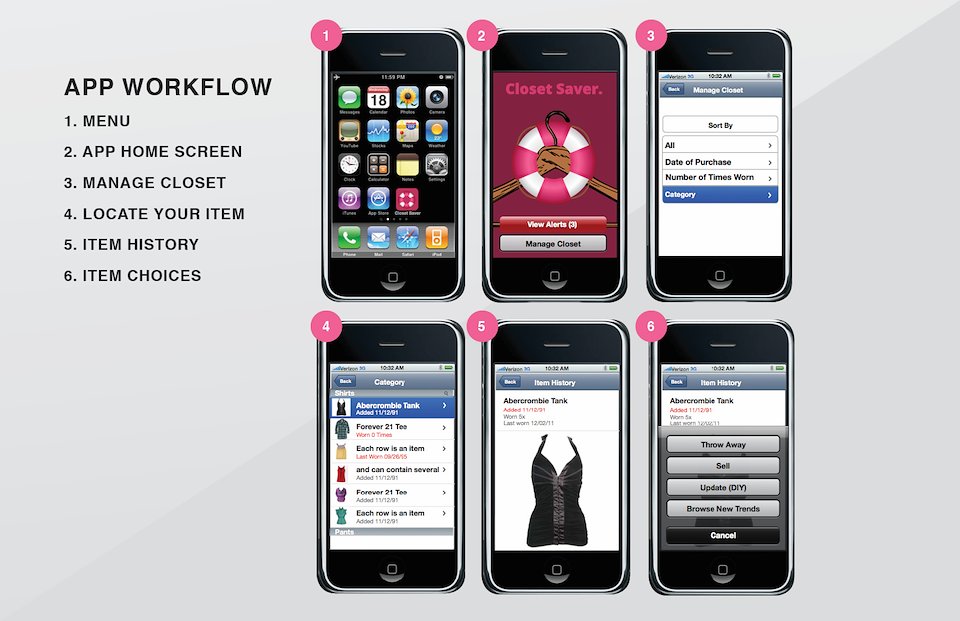 Conceptual: Created mock 'Closet Saver' app for sustainable clothing management.